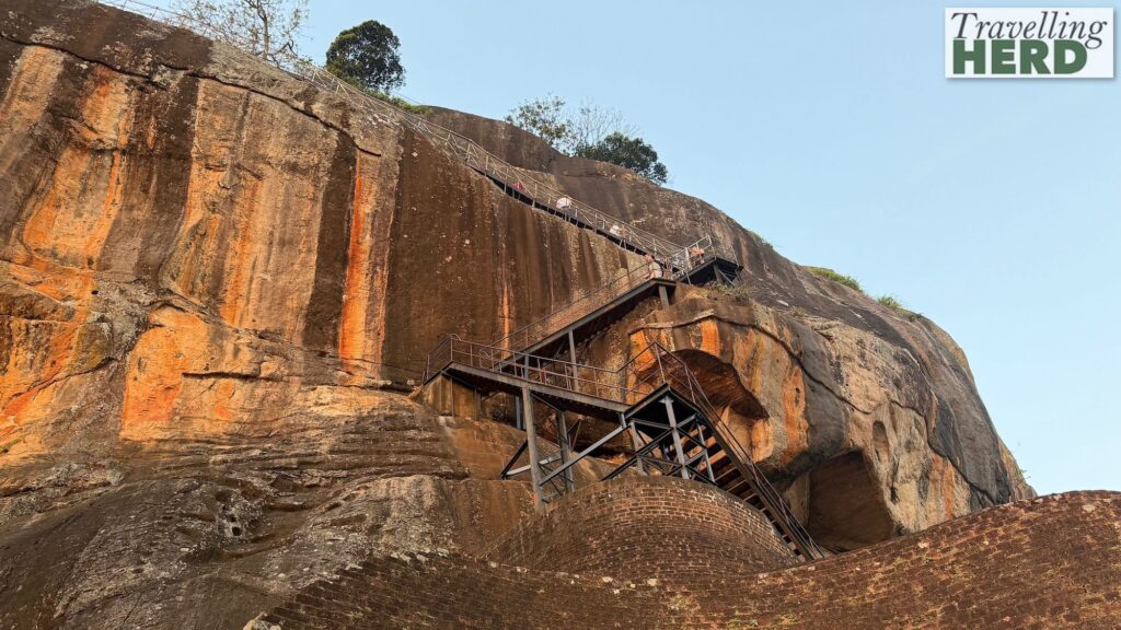 On a small plateau about halfway up the side of this rock the king built a gateway in the form of an enormous lion’s mouth, similar to the one we had seen at the Golden Temple Buddhist Museum, Dambulla the day before. Hence the name Sinhagiri, the Lion Rock.