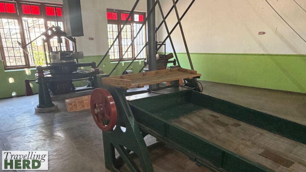 Our first stop in the car was the Ceylon Tea Museum which is housed in a former four storey tea factory on the Hantane Estate. The building dates from 1925 and the exhibits comprise nineteenth century machinery for processing tea including drying furnaces, rollers, dryers and sorters. There is also a small working model of the tea factory [see Video of the day].