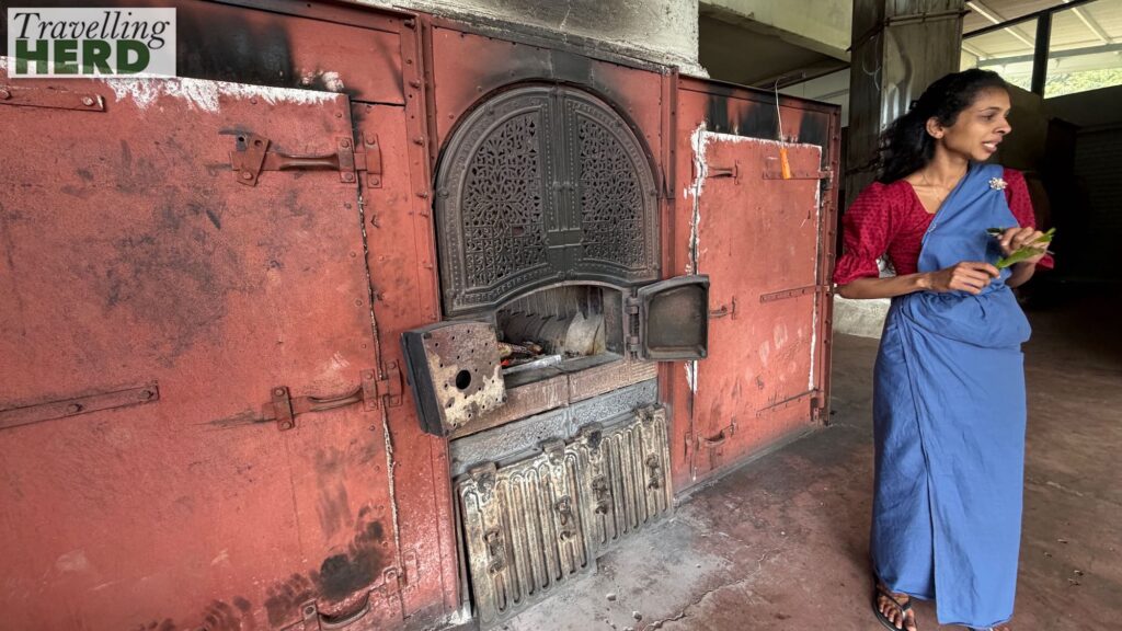 No electricity or gas are used here at the Kingswood Tea Factory: a stove burning only wood provides gentle heat to dry the leaves.