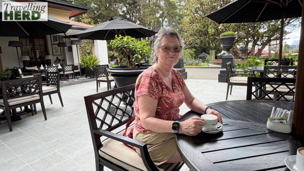 Lake Gregory is a reservoir, created in 1873 during the period of British Governor Sir William Gregory. As we were being asked to pay to walk round it we decided we would instead return to the centre as Matilda loves a restorative beverage in an old colonial setting. On the way we passed some very English architecture. This, coupled with the golf course and the race track make it seem like a home from home and indeed Nuwara Eliya is sometimes known as ‘Little England’. Even the advertisements for new houses would not look out of place in the Home Counties.