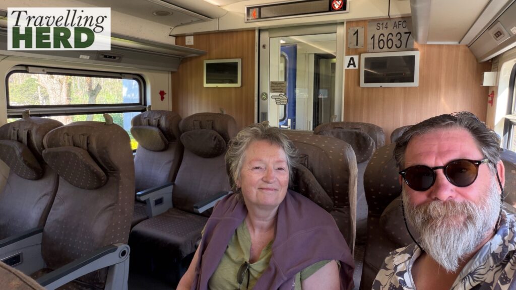The route is popular and passengers are advised to buy tickets and book a reserved seat for this trip two to three months in advance. When we arrived at the station, about an hour before the scheduled departure time, there were queues of people waiting to buy tickets. A handwritten sign pinned to a door frame also warned people that the 13:30 departure was already fully booked.