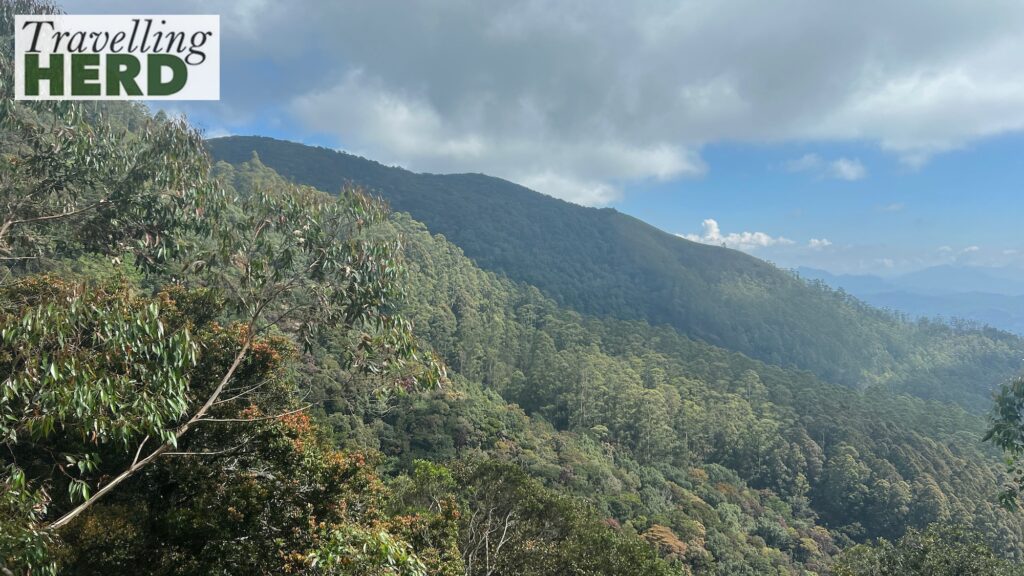 Robert discovered that the doors at the front of our carriage were kept open and he was able to enjoy the fresh mountain air as we travelled past tall, straight eucalyptus trees with the bark peeling off.